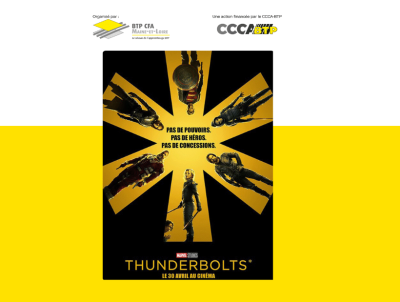 Mercredi 30 avril 2025 à 18h15, BTP CFA Vendée te convie au Cinéville de La Roche-sur-Yon pour assister gratuitement à la projection exceptionnelle du film Thunderbolts* (Studio Marvel).